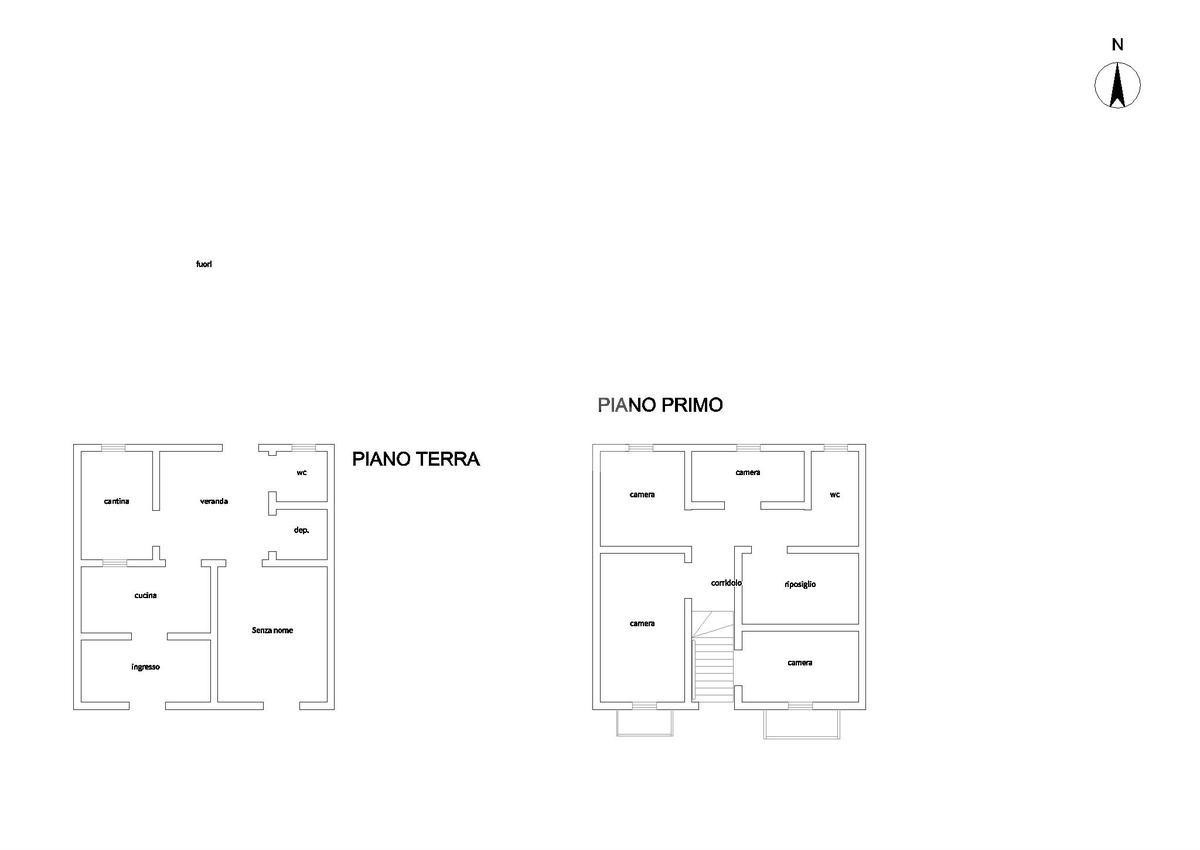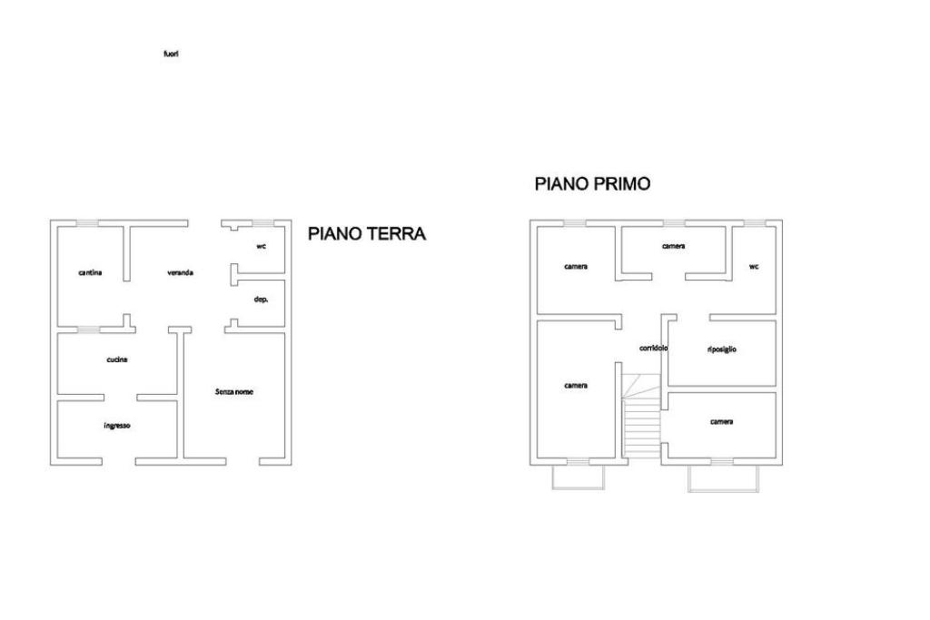 Mediante scala esterna si accede al primo piano composta da quattro camere da letto e bagno: tre camere di ampia metratura e una quarta più piccola, ideale come studio o cameretta.