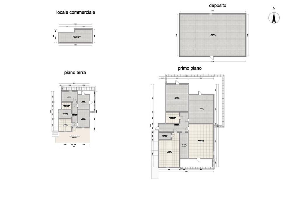 Al piano sottostante l’abitazione troviamo ampi locali commerciali e deposito: