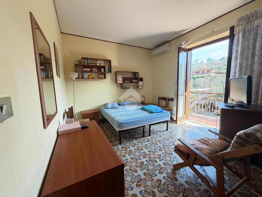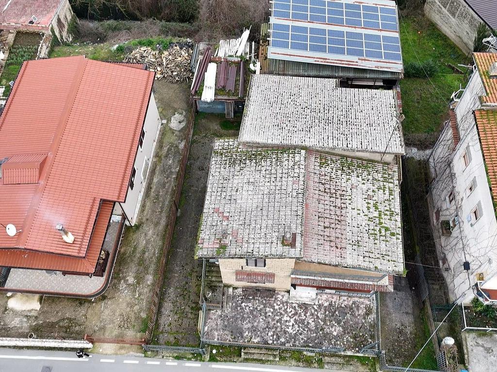 Piano terra (abitabile): cucina con camino, studio, ampio salone, bagno e due camere con uscita su balconePrimo piano (da rimodernare): stessa metratura, ideale come seconda unità abitativa o ampliamento