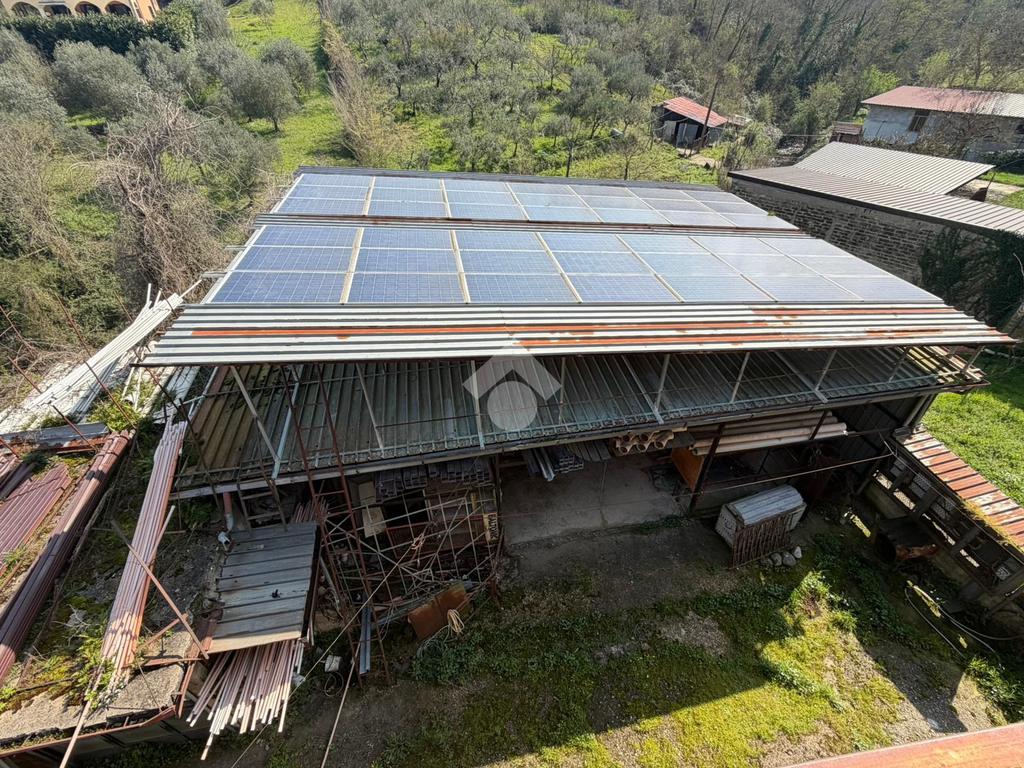 Completano la proprietà: capannone indipendente con pannelli solari, ampio spazio retrostante per carico/scarico, deposito o parcheggio, spazio esterno privato con cancello e area antistante recintata.