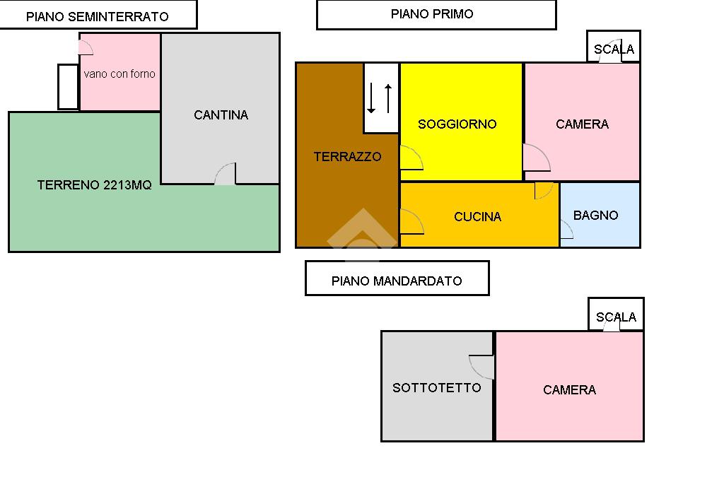 Al piano seminterrato vi è un vano deposito, con forno a legna e camino, inoltre è presente una cantina di circa 50 mq. circa, con accesso diretto al terreno di proprietà che misura 2.213 mq. circa, di cui 500 mq. circa sono pianeggianti e 1.713 mq. circa sono scoscesi.