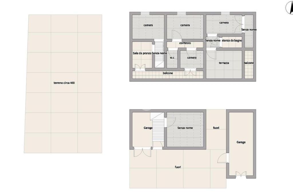 La soluzione e disposta su due livelli; Piano terra garage di circa 50 mq dove è possibile mettere più macchine e cantina ampia e spaziosa. Piano primo si accede da un vano scala ampio con possibilità di creare un piccolo salone aperto , cucina abitabile con camino balcone e finestra, bagno di servizio , 4 camere da letto spaziose, un bagno con doccia e finestra e terrazzo di circa 30 mq con affaccio panoramico.