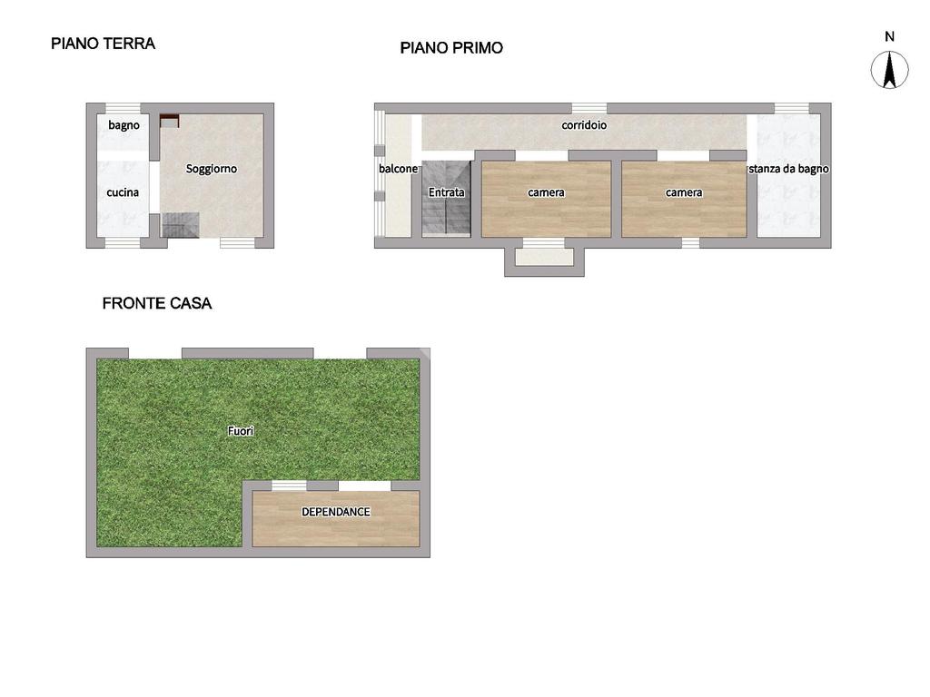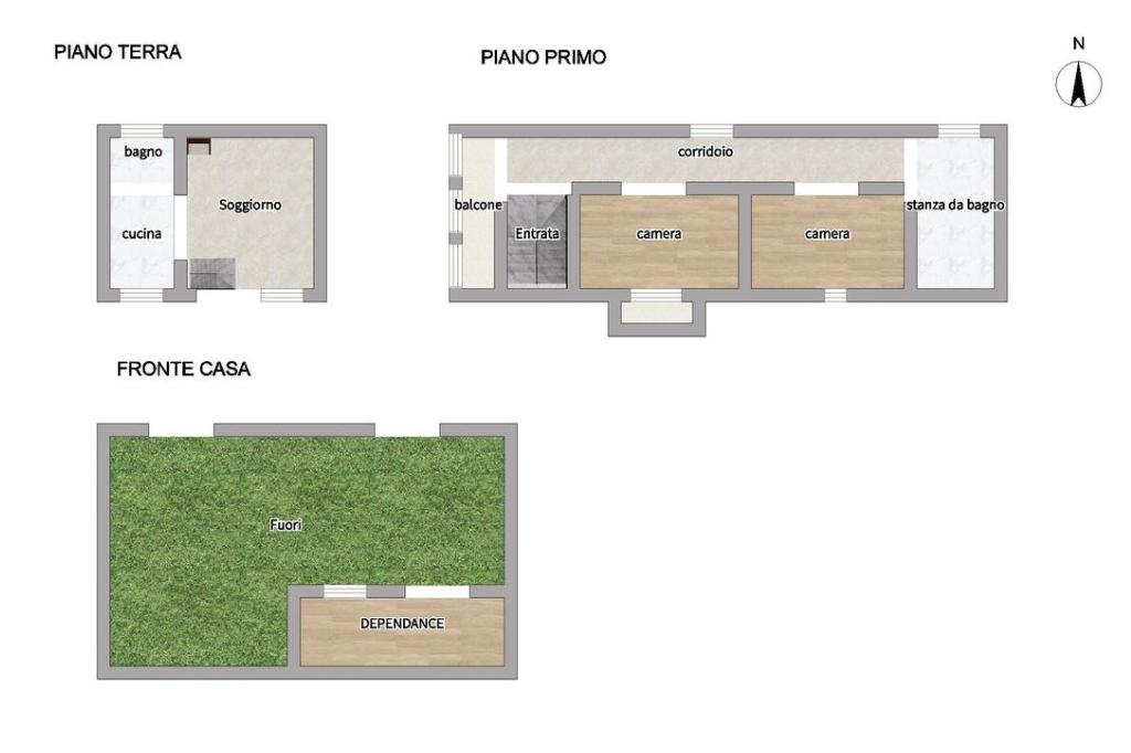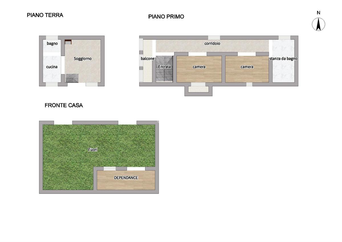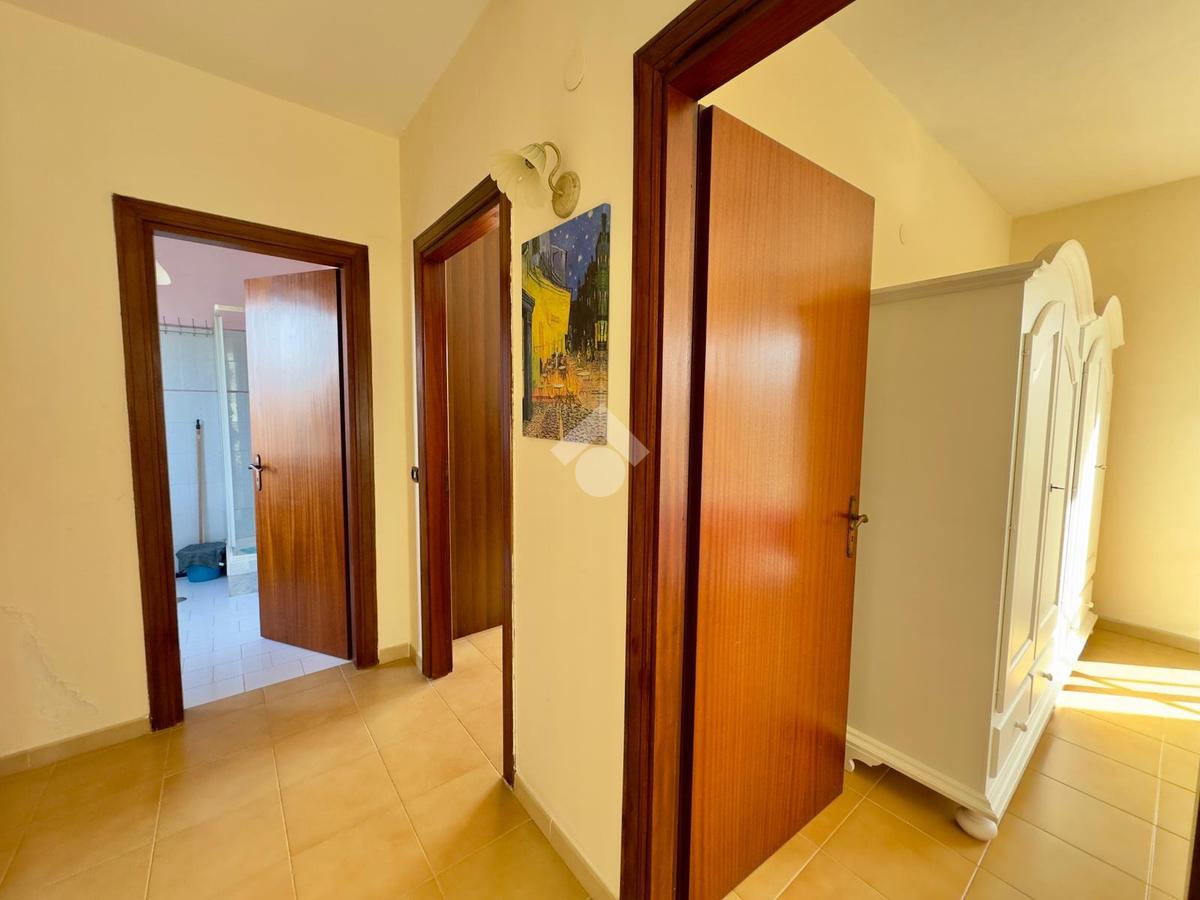Tramite scala interna si accede al piano primo, composto da corridoio con veranda, camera da letto con balcone, seconda camera da letto con finestra e bagno con doccia e finestra.