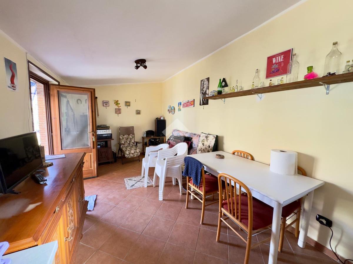 Al piano terra l’abitazione si apre su un accogliente ingresso/salone con camino, angolo cottura e bagno di servizio finestrato.