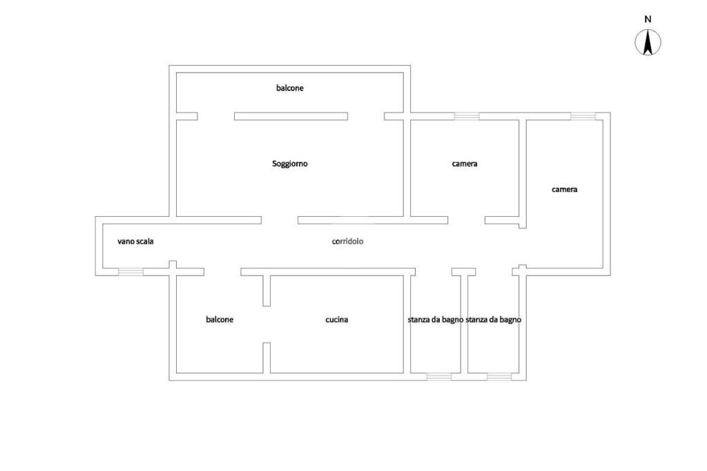 L’immobile è composto da cucina abitabile con accesso al terrazzo, ampio salone con balcone, due camere da letto matrimoniali, entrambe finestrate, e doppi servizi: uno con doccia e finestra, l’altro con vasca e finestra.